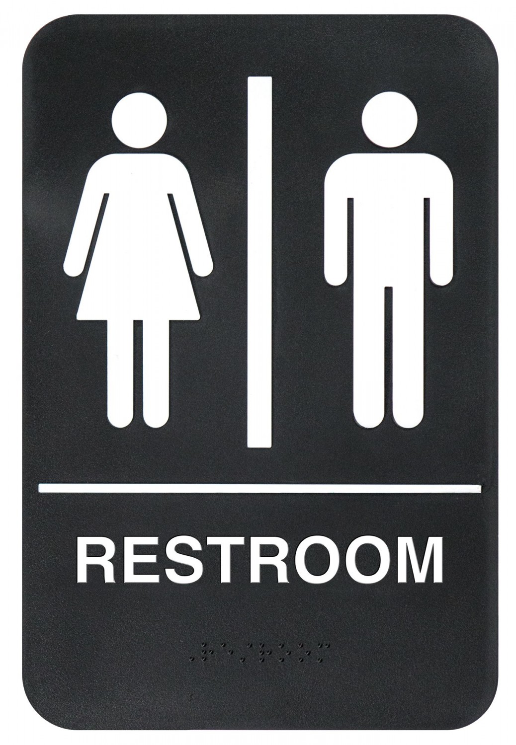 | Description | Sign 'Restrooms' 6x9" White Print on Black W/ Braille 1EA |